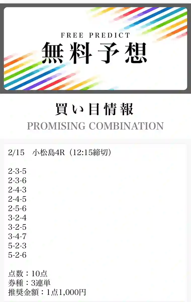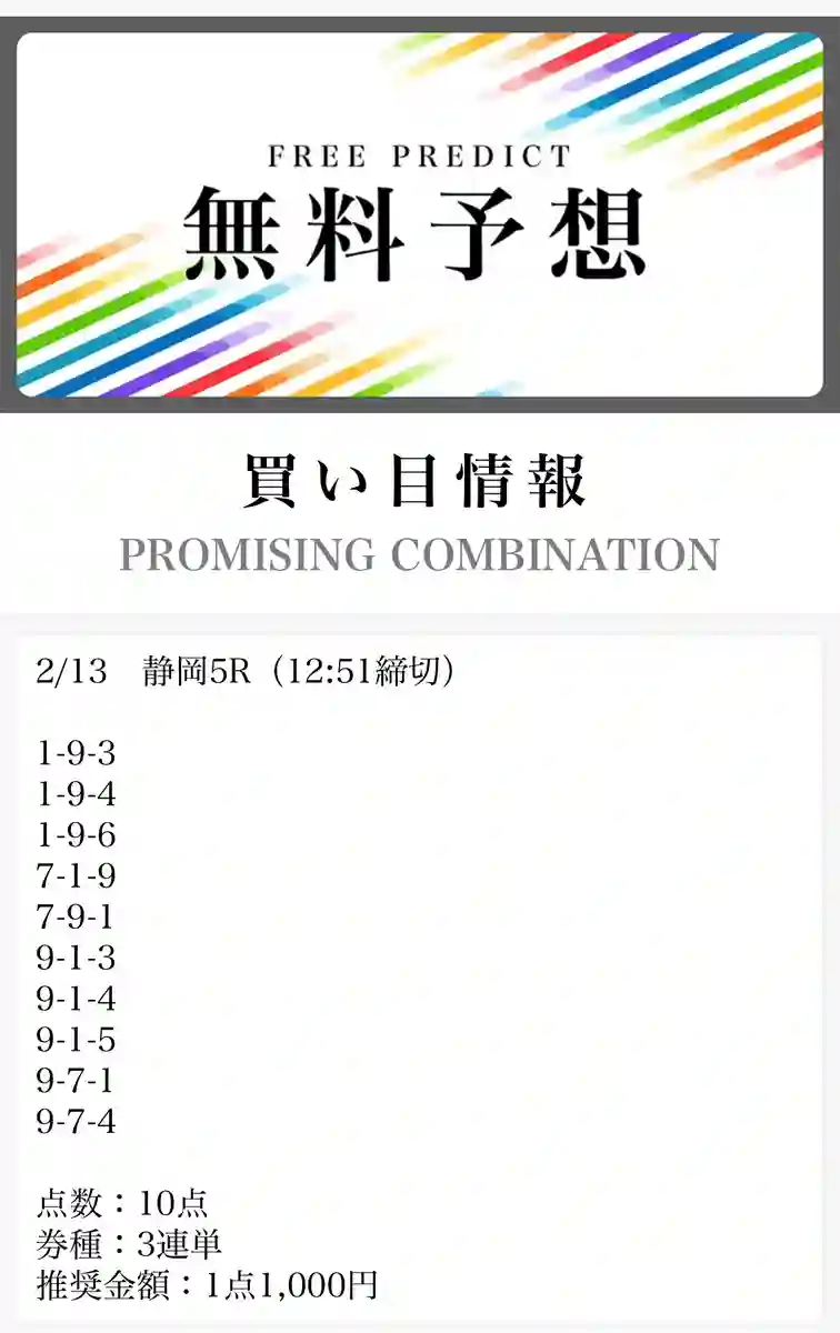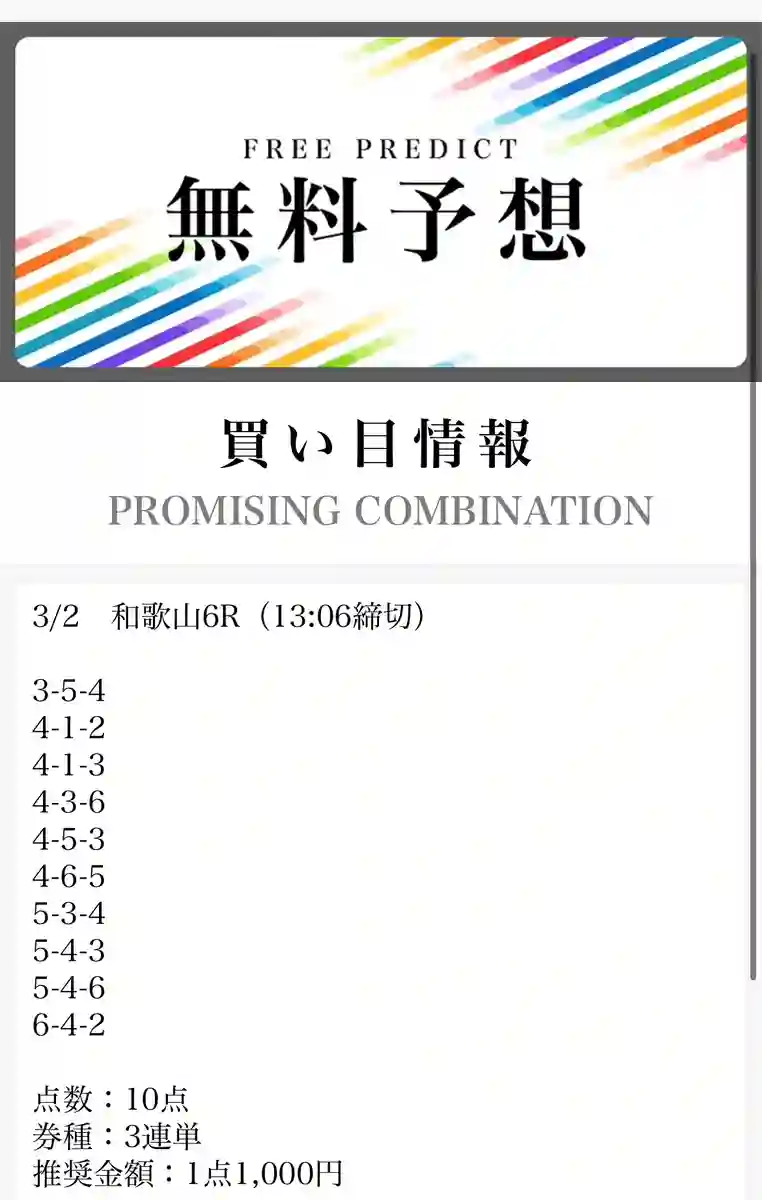 - 有料予想、無料予想ともに精度が高い
