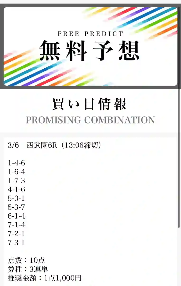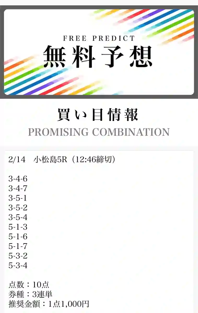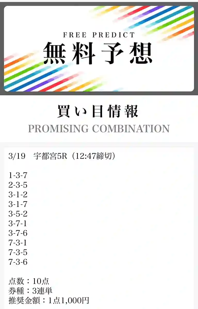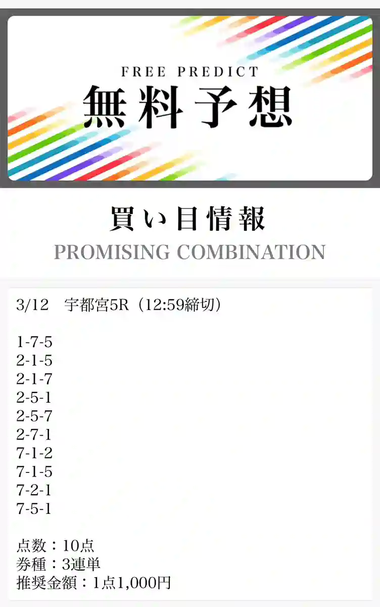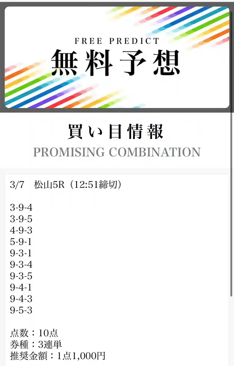- 毎日無料予想が出ていてありがたい