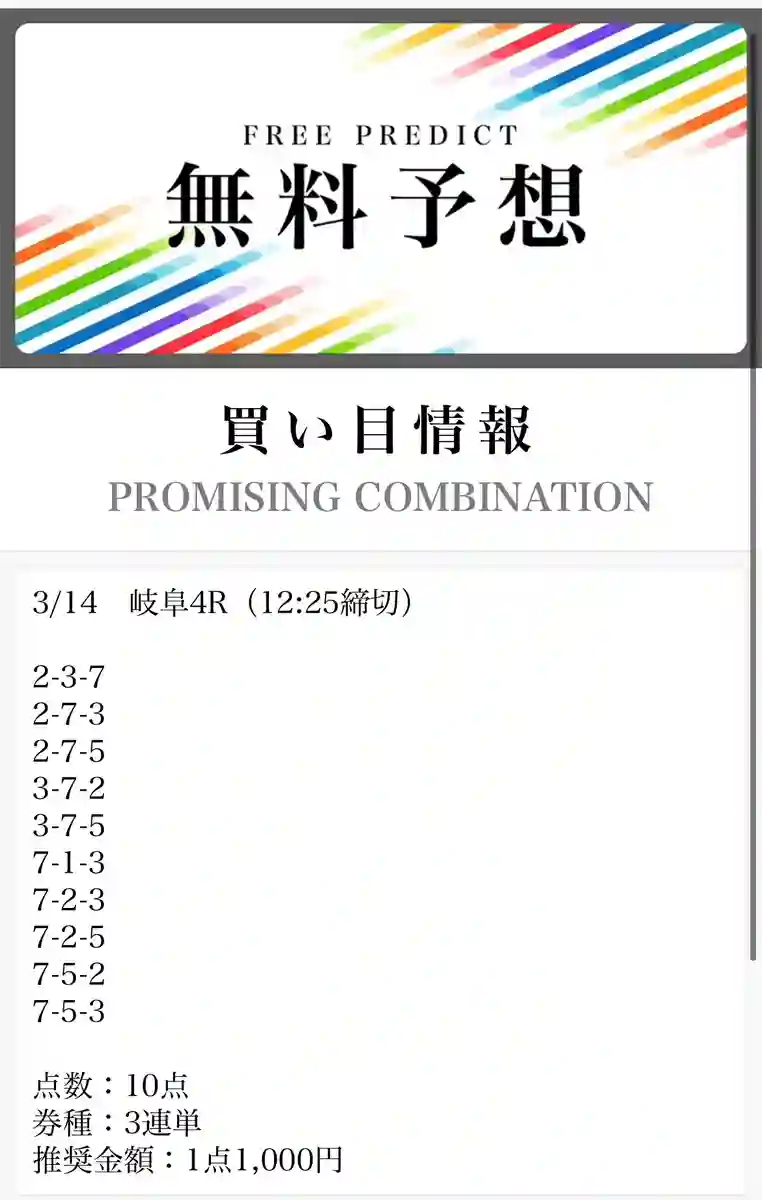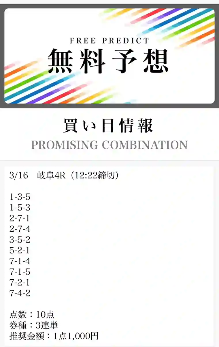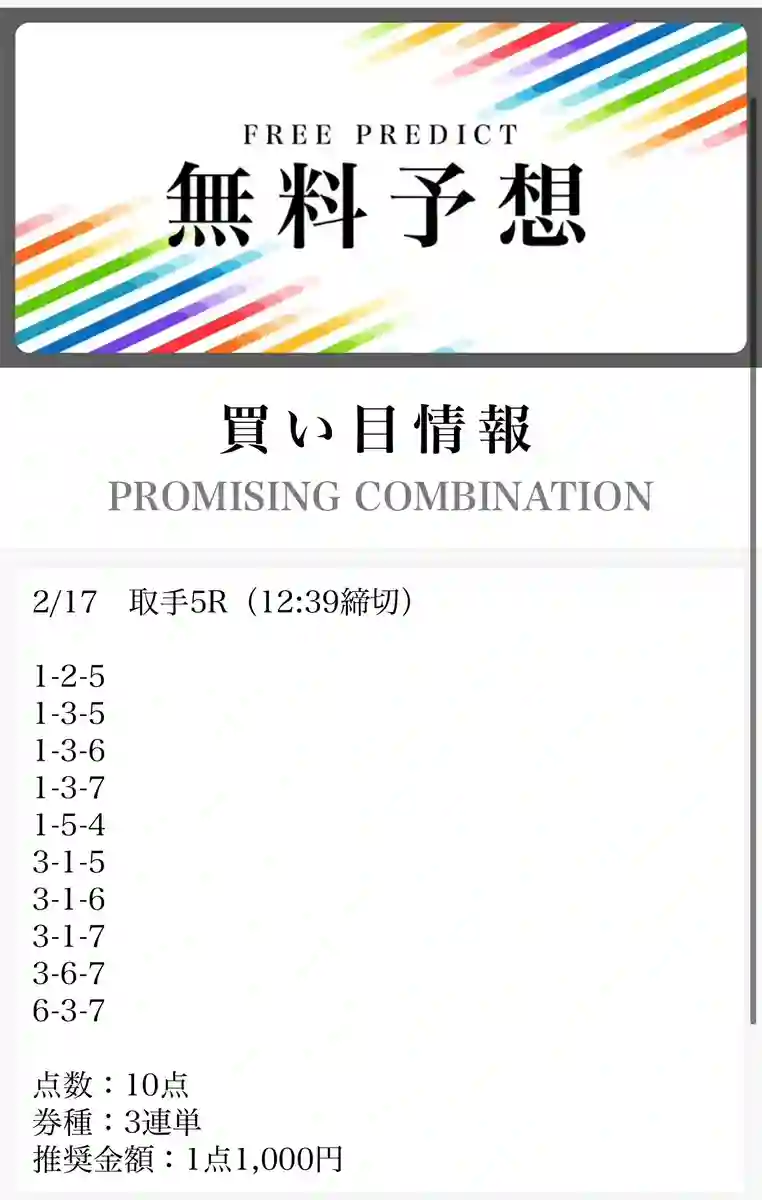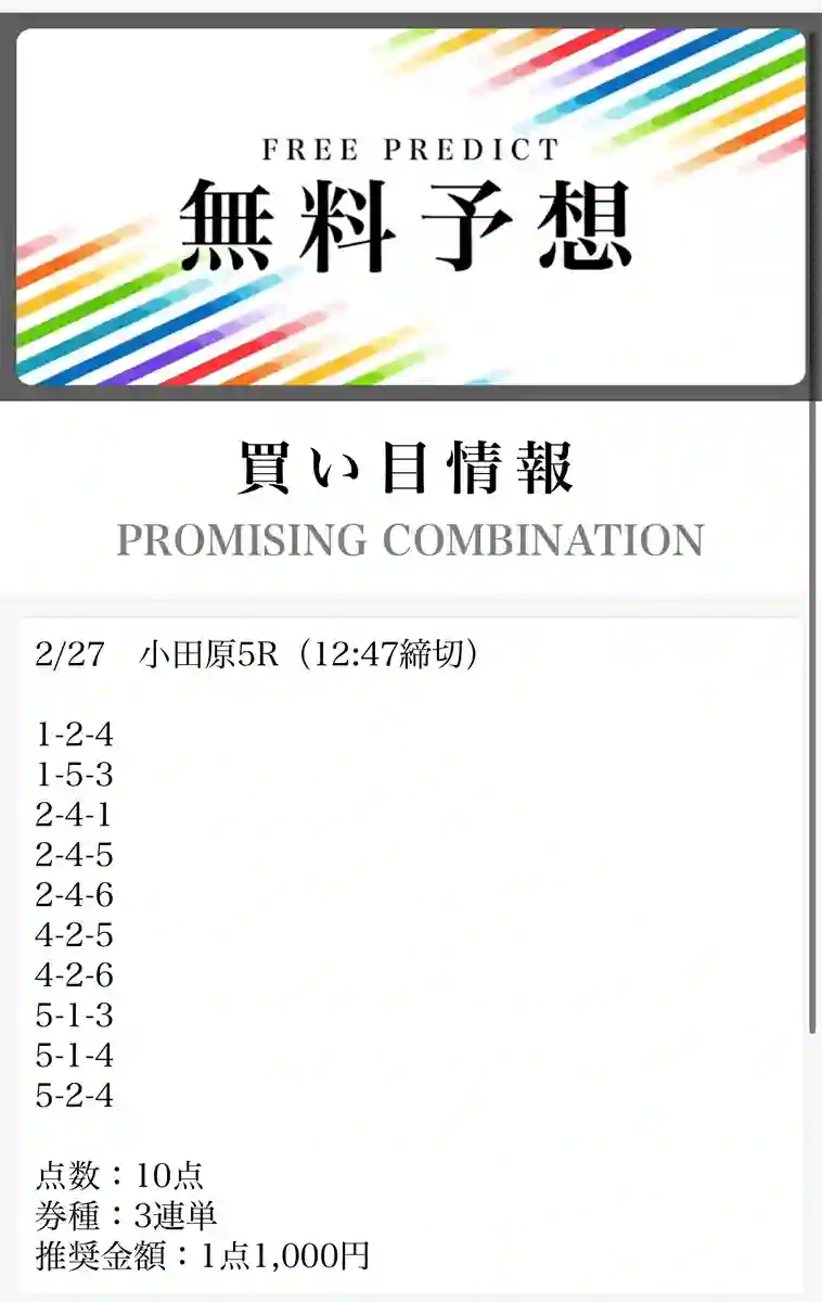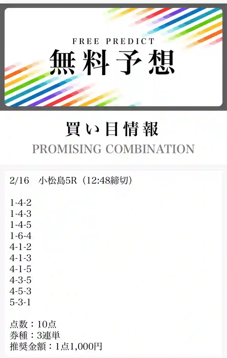 - 毎日無料予想が出ていてありがたい