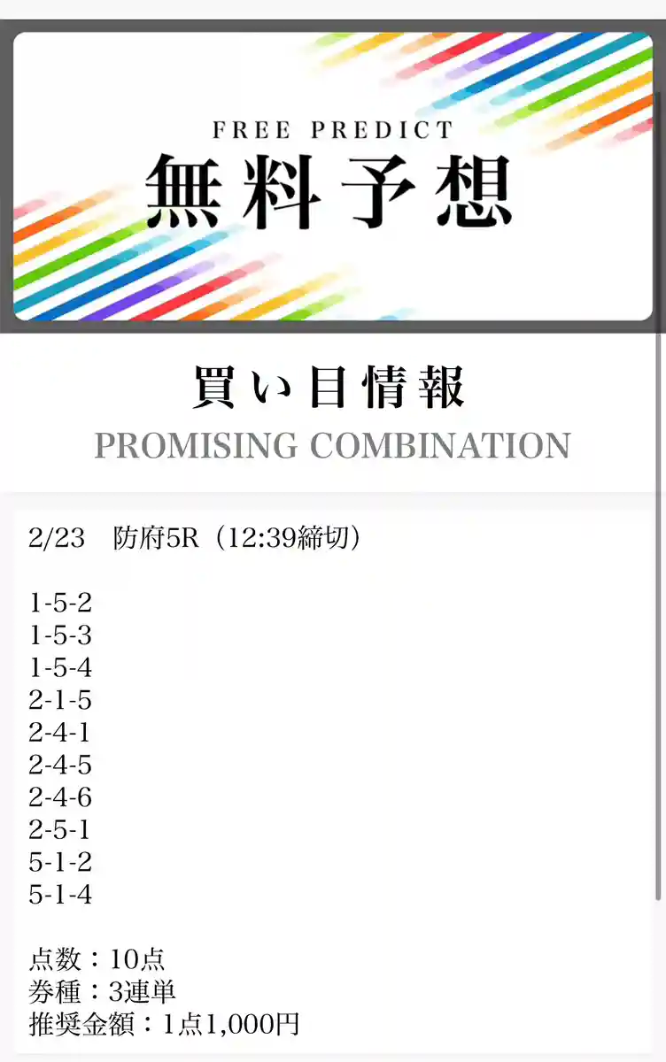 使う前に知れて良かったです。それにしても無料予想当たらなすぎですね・・・