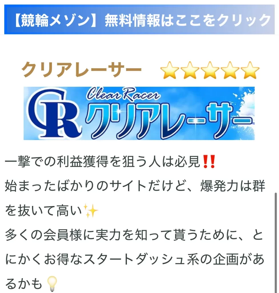 アオイの競輪がおすすめしている競輪予想サイト「クリアレーサー」