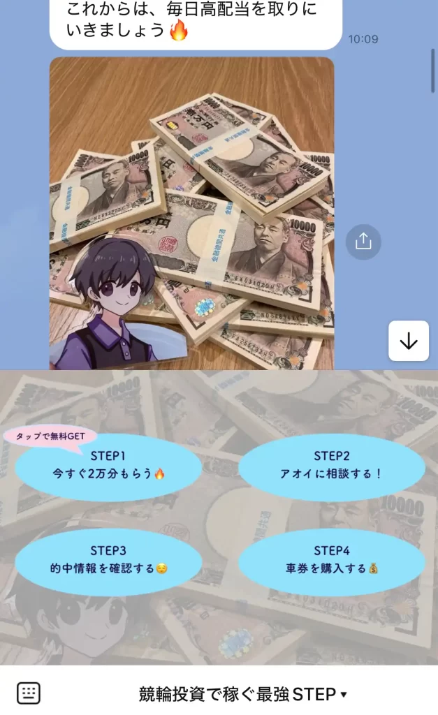 お札が本物なことが分かったところで、さっそくアオイの競輪のLINEも追加して実態を調査していくわよ!