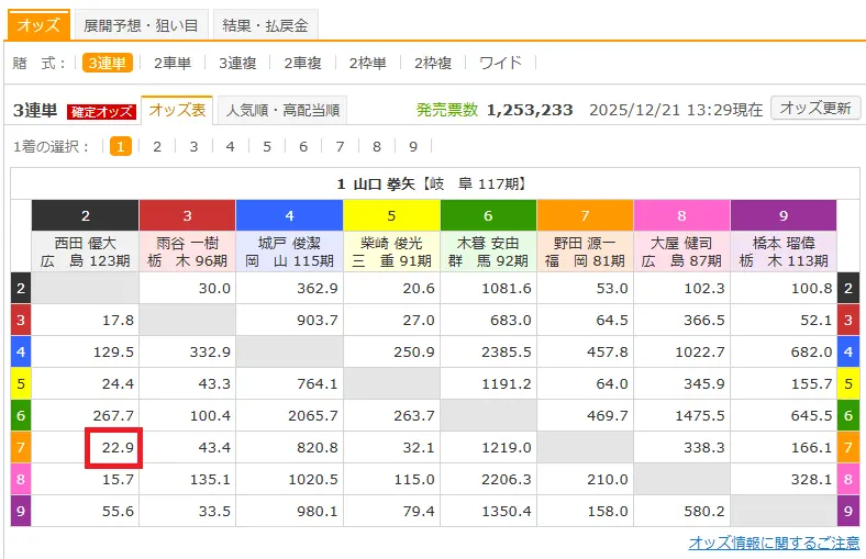この場合は1点1,000円で投票したから、1,000円×22.9(オッズ)=22,900円