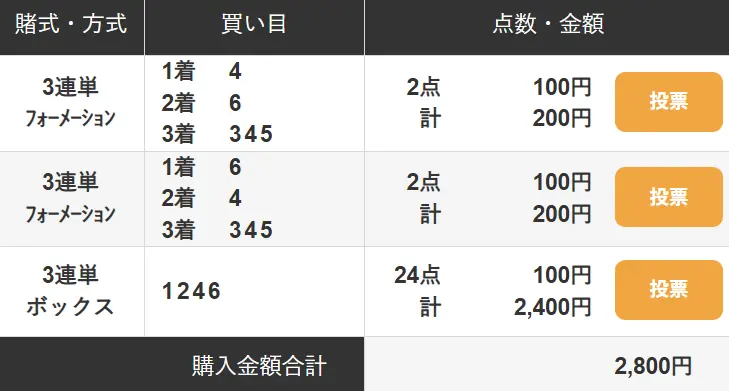 2車単が4-6で不的中