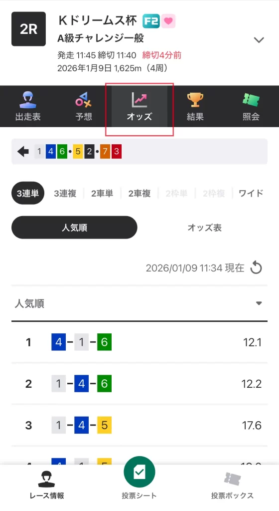 今回は、初心者でも安心して車券が買える「オッズ」方式で購入するぞ!