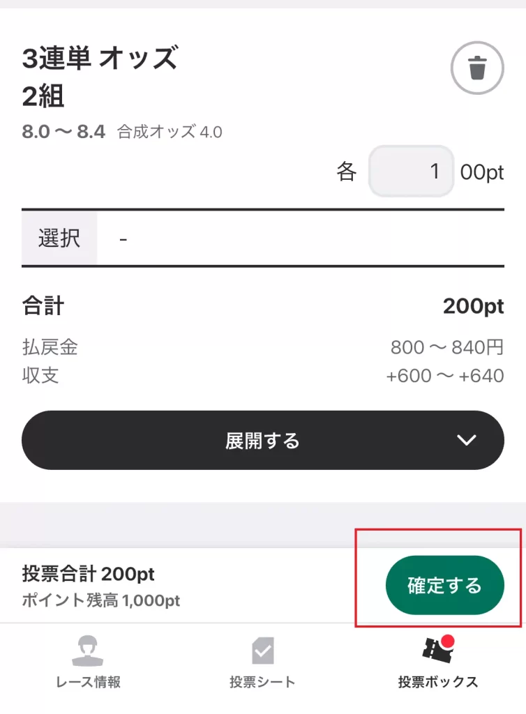 買いたいレースを選んで「投票」をタップする。